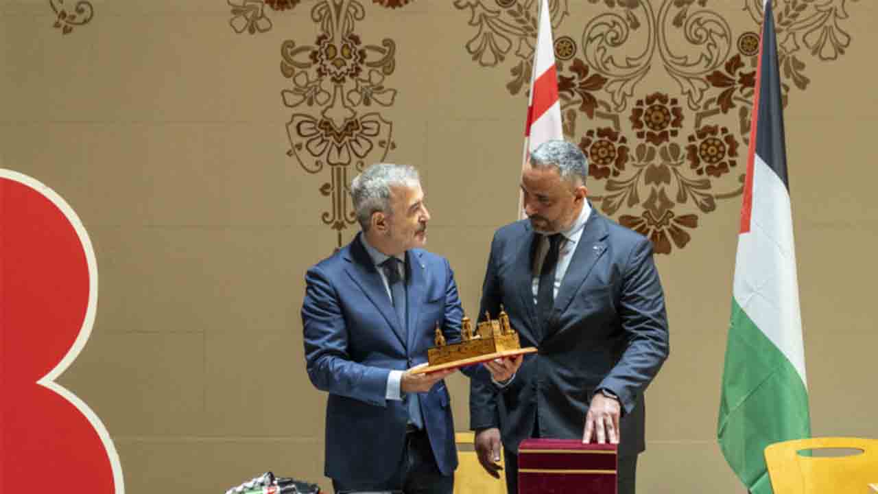 Durante el acto oficial, los dos alcaldes realizaron un intercambio simbólico de regalos. Collboni entregó la B de Barcelona junto con una Paloma de la Paz, mientras que Canawati ofreció una maqueta de la Iglesia de la Natividad, elaborada con madera original del templo.