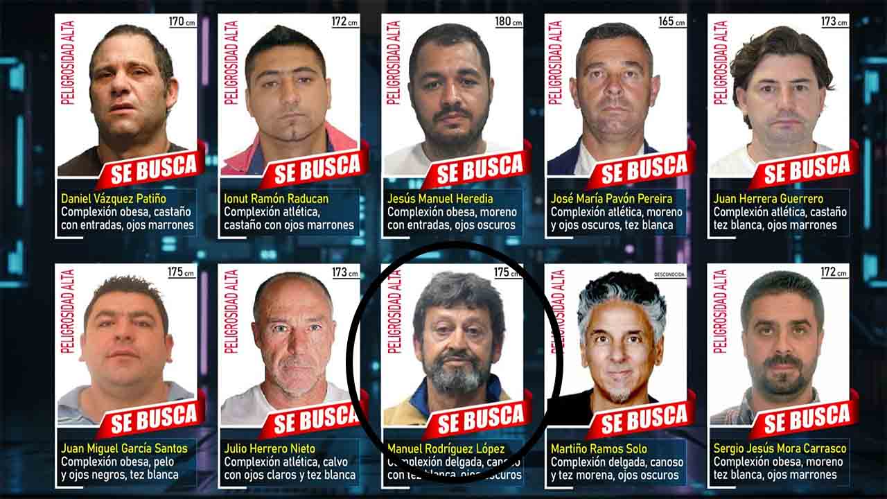 El prófugo originario de Barcelona se llama Manuel Rodríguez López, tiene 63 años y múltiples requisitorias por robos con violencia, tenencia ilícita de armas, lesiones y ruptura de condena. Mide 1,75 metros, es de complexión delgada, tiene pelo canoso, piel blanca y ojos marrones. La policía advierte que “se le considera muy peligroso”.